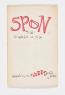 artist's book: red fibre-tipped pen, pen and ink, pencil, collage of printed clippings and found handwritten note, paper cover, stapled binding