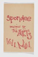 artist's book: red fibre-tipped pen, pen and black and blue ink, pencil, collage of printed clippings, paper cover, stapled binding