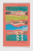 artist's book: pen and ink, collage of printed clippings, orange paper cover, stapled binding