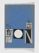 artist's book: pen and ink, collage of printed clippings and found handwritten note, blue paper cover, stapled binding