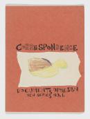 artist's book: pen and ink, collage of found handwritten letters and drawings, orange paper cover, stapled binding
