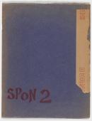 artist's book: blue and red fibre-tipped pen, collage of printed clippings, blue paper cover, stapled binding