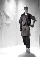 (c) label, centre back waistline, printed in ink on cream synthetic fabric: COMME des GARÇONS