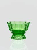 Shallow trumpet-shaped bowl on a thick collar above an everted foot, facet cut with vertical panels.