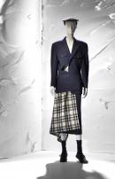 (b) label, centre back waistline, printed in ink on white synthetic fabric: COMME DES GARÇONS,