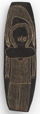 Rosie Karadada was a senior Wunambal woman from Kalumburu, the northernmost settlement in Western Australia. She grew up under the control of a Benedictine mission, where daily life was shaped by discipline, labour and cultural suppression. Despite these conditions, she maintained strong memories of traditional life and the disruptions imposed on family and cultural practices. The Wanjina is a powerful rainmaker spirit associated with the Western Australian region of the Kimberley, particularly the local Worrorra, Ngarinyin and Wunambal peoples. It is believed that Wanjina beings imprinted themselves onto rocks and cave walls during ancestral times, with custodians of the Wanjina repainting such impressions with ochre for tens of thousands of years.
