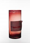 Large, cylindrical, uneven red/brown colouring, etched below rim with clear border of barbed wire.