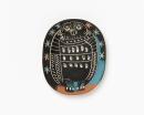 Picasso’s genius at capturing the essence of his subject through bold line work is demonstrated in the curmudgeonly owl depicted on this dish. Using the concave form, Picasso has managed to convey a three-dimensional sense of the owl’s body that follows the inner form of the dish. The dish is coated in a matt black glaze, referencing the inky blackness of the night and the owl is depicted sitting on a branch, surrounded by stars. Picasso’s subtle blending of blue and brown glazes for the stars creates a perfect sense of their twinkling brightness in the night sky.