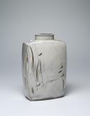 Korea’s long history of ceramic production and minimal aesthetic traditions continue to influence contemporary ceramic artists. Choi Sung-jae draws on the traditions of Korean buncheong ware, where white slip was applied to grey clay then incised designs were added, to create powerful, functional objects. Choi coated the surface of this large slabconstructed jar with a silica-rich white slip then, like a Zen brush and ink painter, masterfully executed a frenzy of markmaking using wooden sticks, a frayed rope, bamboo knives and his fingers. The scene captured in this spontaneous expressive process transports us to a tranquil place of gradually swaying branches, water reeds and ducks.