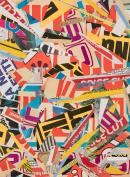 collage of cut printed paper on paper