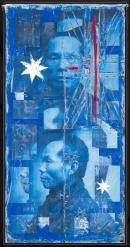 screenprint, inkjet print and synthetic polymer paint on flag on composition board, metal