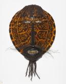 resin, coconut fibre, shell, pearl shell, beeswax, adhesive, fibreglass, cassowary feather, synthetic polymer paint