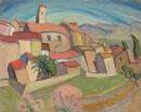 Trained in a conservative manner to be a portrait painter, Mary Swanzy expanded her horizons by studying in Paris in 1905–6. She turned to landscape painting, using an intense colour palette influenced by the work of the French Fauvist artists. This painting depicts the historic town centre of Grasse, a renowned centre for perfume production in Provence in the south of France. While the composition of Pink-roofed town, France is indebted to Swanzy’s study of the landscapes of Paul Cézanne as well as the French Cubist movement, Cubism was only one style in which Swanzy worked in the 1920s and1930s.