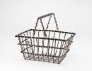 Open weave shopping basket tote comprised of chrome-coated metal chain interlaced with lengths of black leather with hanging double CC medallion.