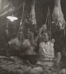 In 1933 Dora Maar travelled to Spain, where she documented the extreme poverty of the country’s cities through people she met on the streets. Aligning with her left-wing politics and opposition to fascism, her photographs honour working-class citizens rather than buildings or monuments. Maar was fascinated by the characters she encountered in La Boqueria, the market in the heart of Barcelona. In this image, she captures a joyful moment as the women vendors playfully turn away from her, hiding their gaze, while a man smiles directly into Maar’s lens.