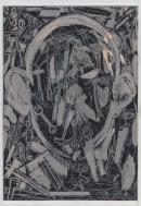 woodcut, etching, lithograph and power-tool abrasion