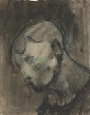 conté crayon, green fabricated chalk and green and black wash