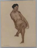 brown conté crayon and brown and black wash on grey paper