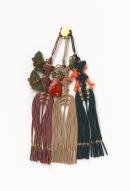 silver, coral, jade, pearls, amber, feathers (kingfisher), silk (cord), semi-precious stones