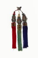 This daesamjaknorigae (ornamental pendant) comprises three silver pots or vases known as norigae, which are believed to possess the power to avert disaster and protect the wearer for the coming year. The three pieces are joined at the top by a clip in the shape of a butterfly, a common motif found in Korean women’s ornamentation that represents longevity and marital happiness.