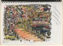 sketchbook: oil pastel, charcoal, brush and ink, collage, 114 pages and 25 loose double-sided collage drawings, plastic cover, metal spiral binding