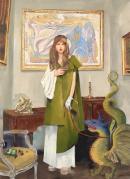 Paulina Ołowska’s Principia and her pet, from her series Haus Proud, is informed by Ołowska’s research into women-run exhibition spaces and schools. Borrowing imagery from the artist’s collection of vintage fashion advertisements and photographs, the series continues the artist’s ongoing exploration into the representation of women archetypes in art history. Ołowska depicts the titular character, a glamorous school principal, holding her pet dragon on a leash and surrounded by other representations of dragons, including a European fresco and an East Asian ivory carving. Presenting the mythological alongside the contemporary, the work also includes the subtle pop culture reference of a vegan Kit Kat.