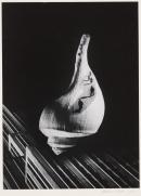 For Barbara Morgan, photomontage allowed her to ‘rearrange realities’. Through surreal visual juxtapositions, her works probe the ideas of time and space, and the tensions between movement and stasis, organic and inorganic, masculine and feminine. In this image, Morgan positions five solitary commuters on the winding path of a bright white seashell, their silhouettes echoing the dark void beyond. By placing the shell upon the slanted facade of a skyscraper, Morgan contrasts the natural world with fast-paced industrialisation, reinforced by the repeated lineation of the building and the perpetual pedestrian march.
