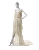 silk (chiffon, thread), tulle, plastic (boning), metal (hooks)