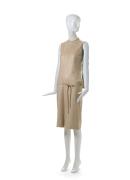 The back of this Alexander McQueen dress is screenprinted with the 1932 photograph Io et gatto (I and cat) by the Italian Futurist photographer Wanda Wulz. The iconic photograph was created by printing two negatives together, a self-portrait of Wulz and a close-up of a cat’s face. McQueen has given the dress further dimension and kinetic qualities by adding laser-cut vertical slashes.