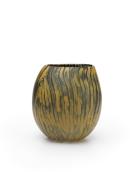 Selinda Davidson created this work, which is from a series of glass vessels, as part of her mentorship with South Australian glass artist Clare Belfrage in JamFactory’s glass studio. The hand-worked surfaces of the vessels feature Davidson’s highly textured linear paintings and are the culmination of her experiments and explorations into the medium of glass as a mode of cultural expression. Davidson makes design (walka) inspired by traditional mark-making and tjukurpa (ancestral stories) that for this series inform the design of each vessel.