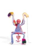 Combining the absurd with the real, Fei Yining creates fictional worlds and speculative narratives across digital media and sculpture. Her sculptures, originally made to scan into her digital animations, appear monstrous and are inspired by horror and suspense writers, such as Edgar Allen Poe and The Scarlet House writer Angela Carter. Offering her creations as pieces of furniture, she juxtaposes their grotesque nature with utility. In Duke of Apple in the Vile Oubliette, her creature leans back into the shape of an armchair. The artist seems to challenge us, asking if we would want to sit in such a peculiar and unsettling piece.