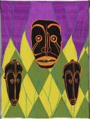 The bold and vibrantly coloured textile quilts of Modern magic employ embroidery and appliqué techniques of harlequin diamonds – a nod to their recurrence in Pablo Picasso’s work and to Yinka Shonibare’s own identification as an art world ‘trickster’ – with mask designs taken directly from Picasso’s eclectic collection of African cultural objects. Within the patchwork, Shonibare challenges notions of cultural authenticity, engaging with the artist’s own identity as a ‘post-colonial hybrid’. As Shonibare explains, ‘Picasso was interested in appropriating from another culture, and I also appropriate from European ethnic art’.
