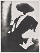 Lillian Bassman developed a distinctive aesthetic of glamour and elegance in her photographs. Her highly expressive portraits combine dynamic graphic effects with complex printing processes. Bassman revisited many of her early negatives in the 1990s and began reworking them, applying toning and bleaching techniques to further abstract the images. As in many of Bassman’s fashion photographs, the model in this work looks away from the camera, giving the impression of a candid, unposed moment. Bassman altered the image so that the peripheral details are blurred, placing the focus on the model in the spotted dress, emphasising the play of graphic lines and forms.