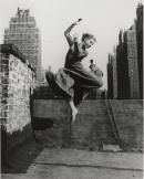 A constant innovator throughout her life, Ellen Auerbach received her first camera in 1928 as a tool to aid her studies in sculpture. The following year, she met her professional and romantic partner Grete Stern in Berlin, where they formed studio ringl+pit. After escaping fascist Germany, Auerbach eventually relocated to the United States and continued her photographic practice, settling among New York’s avant-garde. In this rooftop scene, she captures German dancer Renate Schottelius leaping into the air. In contrast with the surrounding static, imposing skyscrapers, the liberated body in joyous motion serves as a symbol for freedom.