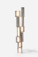 Ton tall is a collaboration between Fiona Lynch Office and Volker Haug Studio. Reimagining Haug’s sculptural table lamp Tableton, it forms part of a collection of lights made from polished gunmetal, polished aluminium or raw aluminium. Each lamp is poured as a single piece using traditional sand-casting methods that impress texture onto the surface. With sustainability in mind, Lynch reconfigured an existing cast to create this version in raw aluminium. Fragmented in the vertical plane, the light glows in all directions, creating the illusion of a continuous beam. This lamp is part of Lynch ’s first capsule collection, which produces pieces using waste materials and local fabrication.