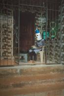 A central principle in Gauri Gill’s practice is collaborative partnerships as a way to blur the line between photographer and subject. Since 2014, she has worked with the renowned mask-makers of the Maharashtra region of India and her subjects to create a collaborative project. The people in Gill’s photographs wear masks, of their own design, as they engage in everyday village activities. Gill navigates the ethics of representation by inviting her subjects to participate in the creation of their own photographic likeness. The masks they don both allow them creative expression of a contemporary language of symbols, while obscuring their individual identities from exploitation.