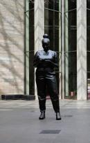 This large-scale sculpture stands directly on the ground, eschewing the elevated position and implicit ‘elevation’ of a statue on a plinth in public space. It confronts the lack of people of colour represented in public statuary. Intentionally ambiguous, Price’s figures do not depict a certain individual, but are instead drawn from an amalgamation of found sources, including observed individuals and stereotypes represented in the media. In this way, Price’s works serve more accurately as psychological portraits of the viewer, prompting them to consider their own socially learnt attitudes and assumptions.