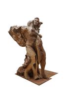 Carved wood carries with it a sense of the origin of the material, reminding us of the tree it once was. In 3MMM – rivalry, Osamu Mori carves the human body into the organic form of a 120-year-old camphor tree. This age is significant, mirroring the age of the oldest living person, emphasising the ephemerality of human existence. The tree, with its warps, cracks, and imperfections, becomes an integral part of the artwork as if it is reclaiming the human form. Camphor holds a rich history, employed for its aromatic scent as an embalming fluid, a medication and manufacturing chemical. In 3MMM – rivalry, it embodies the healing powers inherent in nature.