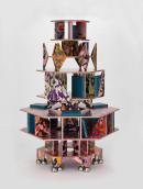 Through Kaleidoscope-o-rama Wood reinterprets the colours, patterns, materials and forms found in Regency salons, to foreground the social phenomena of the period and draw out the continuing social values of equality and open access to education that were spearheaded by women at the time. By focusing on books, a fundamental medium for knowledge sharing, Wood invites audiences to think more deeply about how ideas are captured and shared, and to consider whose voices are being broadcast and what ideas and mediums hold intellectual authority.
