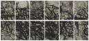 drypoint and liftground aquatint on 12 sheets with hand-engraving tool