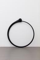 Heather B. Swann’s figurative sculptures often resemble human or animal bodies that are slightly altered, with a tendency towards surrealism and abstraction. This coiled black figure is known as an ouroboros, an arcane symbol associated with various ancient cultures, including Celtic, Egyptian and Greek. Depicted consuming its own tail, the ouroboros often represents self-reflexivity, the cyclical nature of existence, and the eternal cycle of life and death. Swann’s rendition captures not only the mysticism and eternal continuity inherent to this ancient emblem, but also the darker undertones of self-destruction and regeneration.