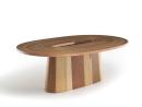 Brodie Neill’s ReCoil dining table embodies a strong sense of place, time and identity. Using reclaimed Hydrowood timber veneer offcuts, Neill has meticulously coiled and laminated by hand three kilometres of veneer. The wood used to make the veneer is harvested from trees that have been preserved beneath the waters of Lake Pieman in Tasmania since 1986, a measure taken to establish reservoirs for hydroelectric power generation. The design references a tree’s annual growth rings, serving as a symbol of the material’s embodied memory. Neill’s work aims to promote sustainable management practices that are necessary for the protection and survival of Australian timber species.