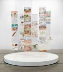 watercolour, gouache, pen and brush and ink and graphite on synthetic fabric