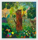 Depicting imagined landscapes, Shara Hughes views her works as reflections of her psychological interior world. She suggests that a single flower might be ‘a self-portrait, while a landscape feels more like a zoomed-out view of what’s going on personally or emotionally’. Hughes uses abstract and representational imagery, depicting natural motifs, snake-like trees, reflections of bodies in water and night skies alongside abstracted, undefined forms. Her technique, in which she mixes pigment on the canvas surface, is reminiscent of a range of art historical references, including Post-Impressionist and Colour Field painting.
