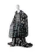silk (chiffon), synthetic polymer paint, leather, plastic, rubber, metal (fastenings)