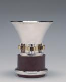 Bell-mouthed, set on four cylinders with heavy bands of silver-gilt, base "bois des Iles".