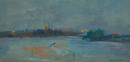 inscribed (diagonally) (inverted) in ballpoint pen on reverse l.l.: 'Hammersmith from Chiswick / 1954 / Fred Williams