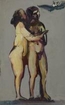gouache and varnish on cardboard
