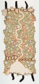 possum skin, earth pigments, synthetic polymer paint, (waxed thread)