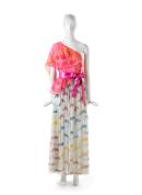 screenprinted silk (chiffon), synthetic fabric (satin), elastane